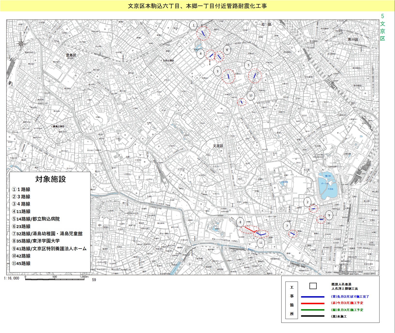 | 文京区 | 根津二丁目 | 文京区根津二丁目付近枝線工事 | 3.12~ 8.6 |
