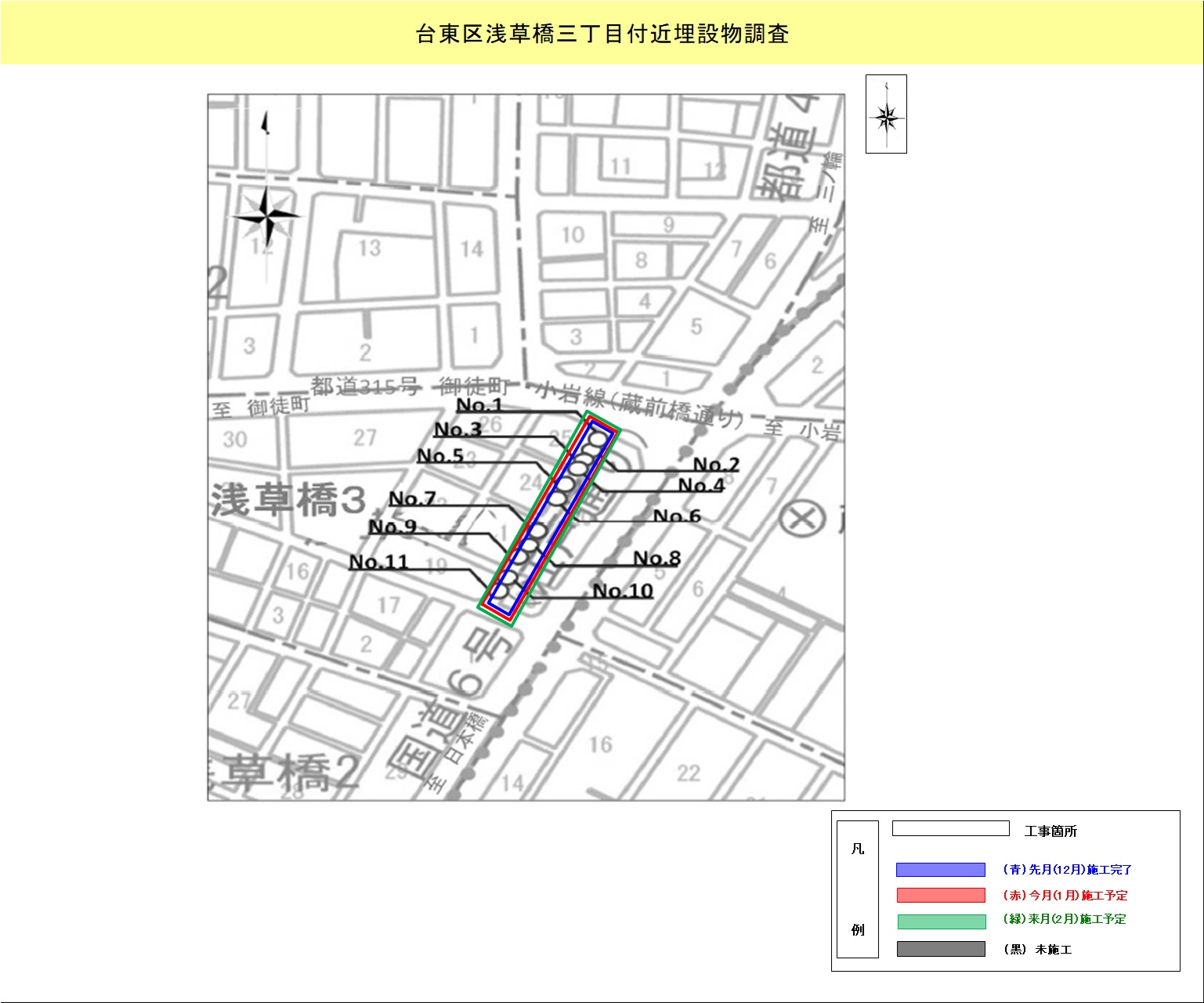 | 台東区 | 日本堤二丁目 | 台東区日本堤二丁目付近再構築工事 | 5.12~ 8.11 |