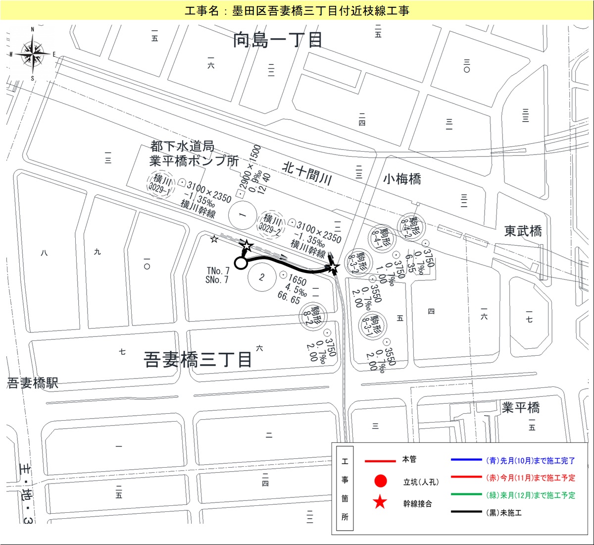 | 墨田区 | 吾妻橋三丁目 | 墨田区吾妻橋三丁目付近枝線工事 | 7.7~ 10.5 |