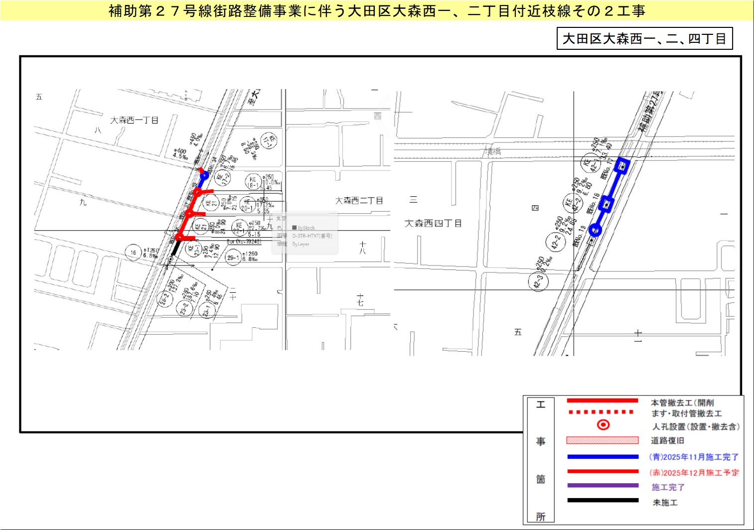 | 大田区 | 大田区大森西一、二、四丁目 | 補助第27号線街路整備事業に伴う大田区大森西一、二丁目付近枝線その2工事 | 7.9~ 8.5 |