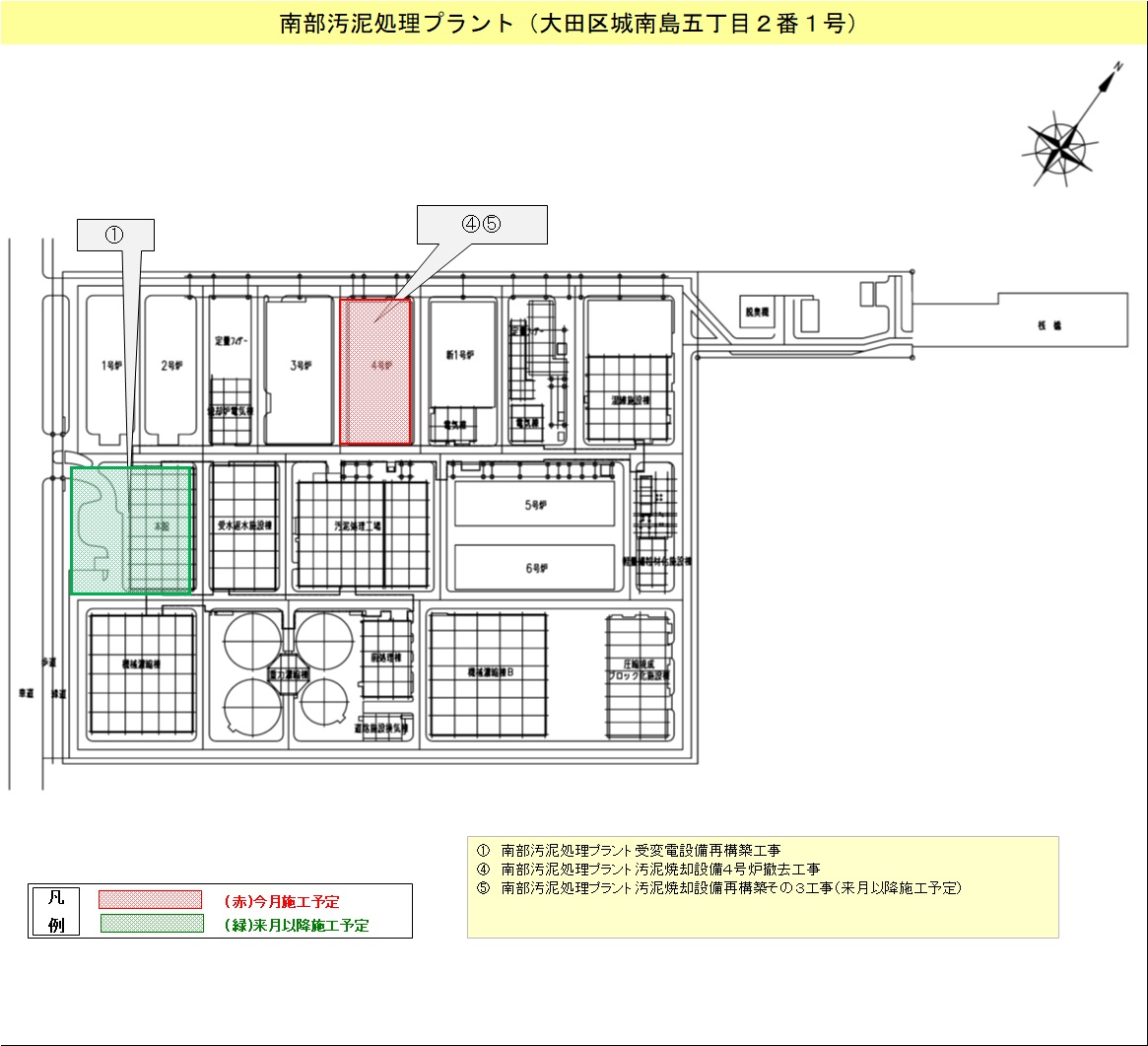 | 大田区 | 大田区城南島五丁目2番1号(南部汚泥処理プラント内) | 南部汚泥処理プラント汚泥焼却設備再構築その3工事 | 7.4~ 12.3 |
