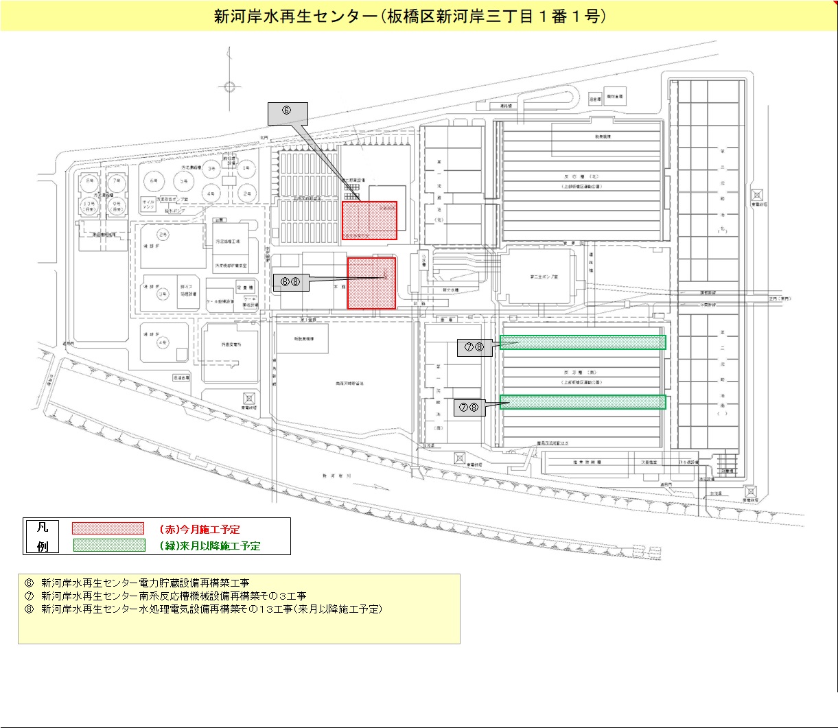 | 板橋区 | 新河岸三丁目1番1号(新河岸水再生センター内) | 新河岸水再生センター水処理施設耐震補強及び設備再構築に伴う建設工事 | 7.10~ 8.11 |