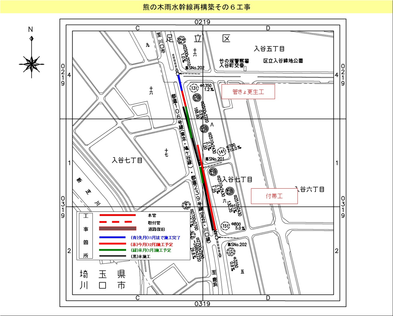 足立区 入谷五丁目、七丁目 熊の木雨水幹線再構築その6工事 7.6~