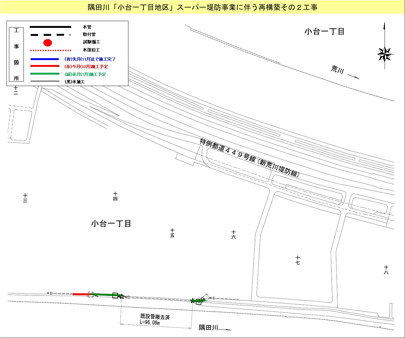 足立区 小台一丁目 隅田川「小台一丁目地区」スーパー堤防事業に伴う再構築その2工事 7.9~
