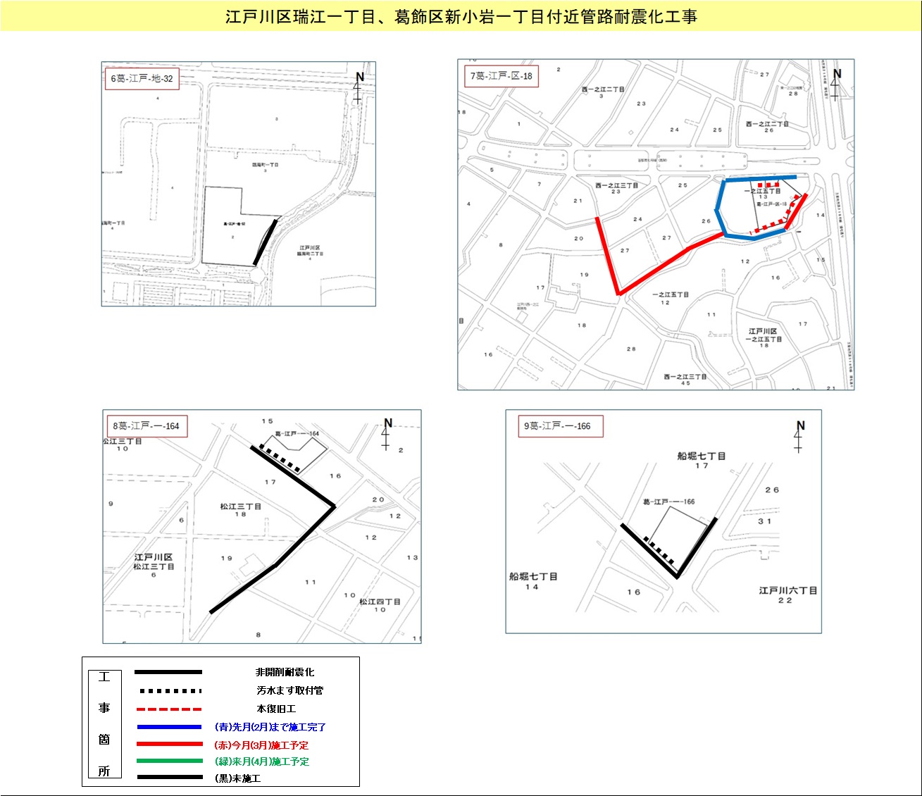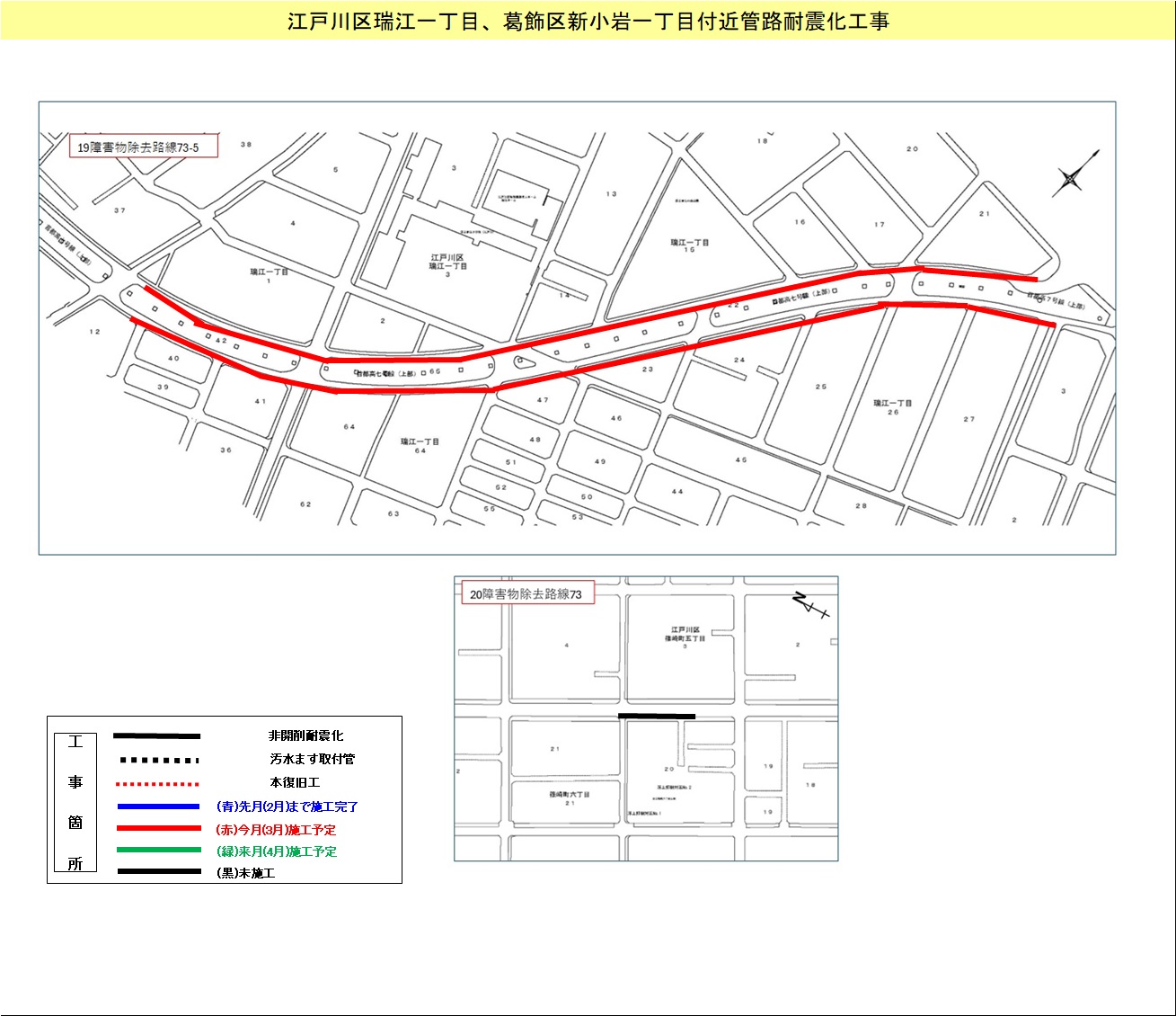 江戸川区瑞江一丁目、葛飾区新小岩一丁目付近管路耐震化工事 | 7.11~ 8.10 |