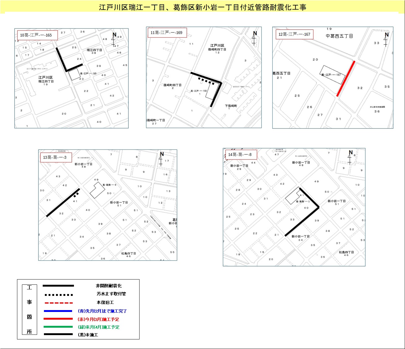 | 江戸川区 | 小松川一丁目 | 江戸川区小松川一丁目付近枝線工事 | 4.2~ 8.7 |